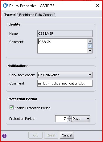In the DELL EMC Networker Management Console create the desired POLICIES including the -CSBKP- tag in the comment section.